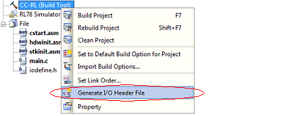 On the Project Tree panel, select the Build tool node, and then select [Generate I/O Header File] from the context menu