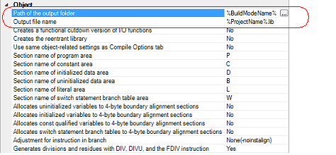Select the build tool node on the project tree and select the [Library Generate Options] tab on the Property panel.