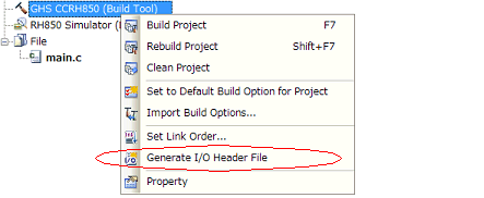 On the Project Tree panel, select the Build tool node, and then select [Generate I/O Header File] from the context menu |