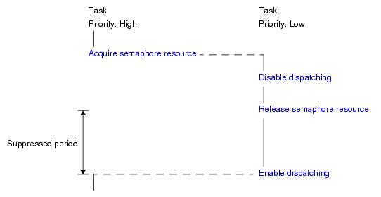 As a result, dispatch processing (task scheduling) is disabled from when this service call is issued until ena_dsp is issued.