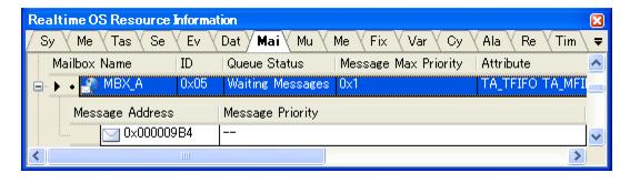 The waiting message information (e.g. Message Address and Message Priority) only appears if there are messages queued in the mailbox's wait queue.