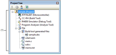 This panel is used to display the project components (Microcontroller, Build Tool, Debug Tool, etc.) in a tree structure.