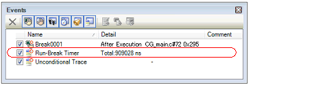 It is interpreted as if a break event (Hardware Break or Software Break) has been set at the target address, and it is managed in the Events panel (see "2.19 Manage Events" for details).