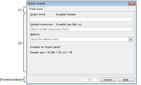 Select a tab to switch the type of an action event to be set.