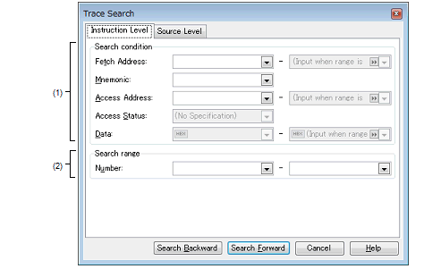 Trace Search Dialog Box: [Instruction Level] Tab
