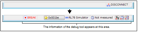 After succeeding in the connection to the debug tool, the Statusbar of the Main window changes as follows: