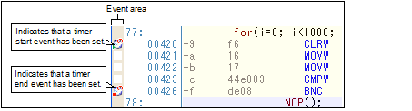 Once a timer start event or a timer end event is set, the following event mark is displayed in the event area of the line that an event is set.