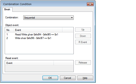 Perform this operation in the Combination Condition dialog box [E1][E20] that is opened by selecting [Edit Condition...] from the context menu after moving the caret to a combination break event you want to edit on the Events panel.