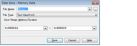 The Data Save dialog box can be opened by selecting the [File] menu >> [Save Memory Data As...] (when this operation is taken place with range selection on the panel, the memory data only in the selected range is saved).