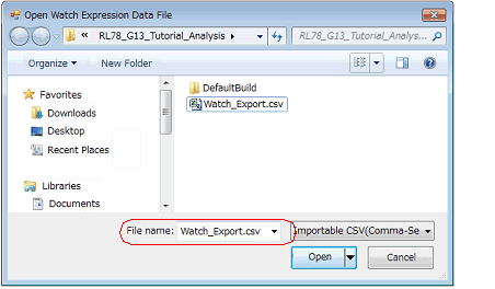 On the Open Watch Expression Data File dialog box that is automatically opened, specify the file that exported previously, and then click the [Open] button.