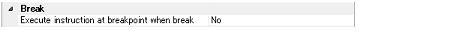 You can specify the timing to stop the program execution by breakpoints whether after or before the execution of the instruction at the breakpoint. Specify in this property whether to break after executing the instruction.