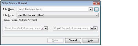 The contents of the memory of the debug tool currently connected can be saved (uploaded) in an arbitrary file.