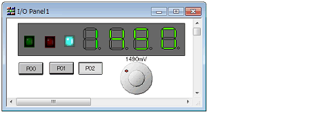 The Simulator GUI allows input manipulation and output display simulation by providing standard connected parts (buttons, LEDs, level gauges, etc.) in which the I/O block for peripheral I/O designed as a GUI interface.