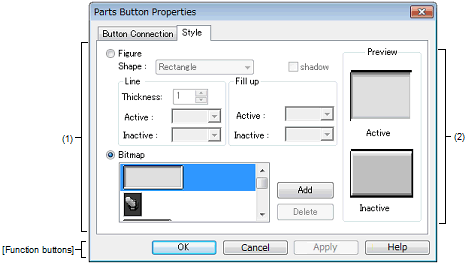 There are two types of button display styles, figure and bitmap. These styles can be changed on the [[Style] tab].