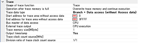 Make settings in the [Trace] category on the Property panel’s [Debug Tool Settings] tab.