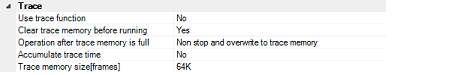 If you've selected [Yes] for the [Clear trace memory before running] property, when the program is re-executed, the trace memory is cleared before trace data is written to.