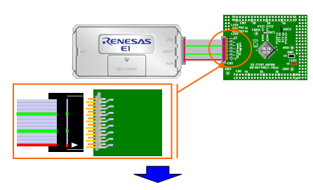 In this step, you perform on-chip debugging using E1.