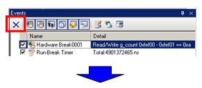 Confirm that [Hardware Break0001] has been deleted from the Event panel. |