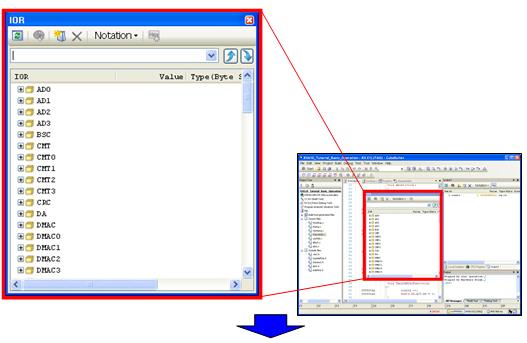 In this section, you observe the value of the register that implements peripheral functions built in the microcontroller. First, let's make the panel float so that it is easier to view.