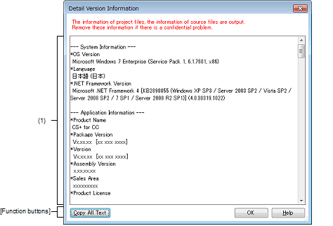 This is only shown when this dialog box is opened by the [Detail Version Information...] button in Message dialog box.