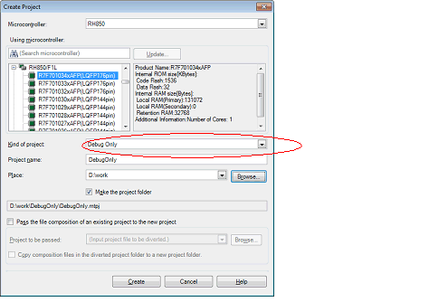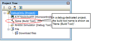 To create a debug-dedicated project, however, specify [Debug Only] with the [Kind of project] item on the Create Project dialog box.