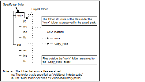 Specify the top folder of the packing target to save with the project folder structure preserved. |