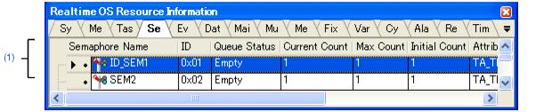 - From the [View] menu, select [Realtime OS] >> [Resource Information].