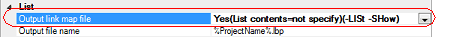 Select [Yes(List contents=specify)(-LISt)] in the [Output link map file] property. The following property will be displayed.
