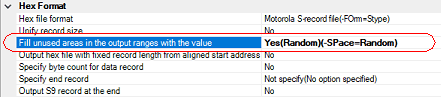 Select [Yes(Random)(-SPace=Random)] in the [Fill unused areas in the output ranges with the value] property in the [Hex Format] category.
