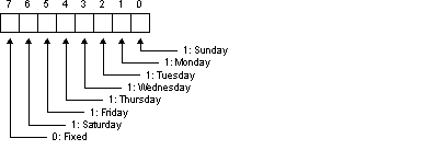 typedef struct { uint8_t alarmwm; /* Minute */ uint8_t alarmwh; /* Hour */ uint8_t alarmww; /* Weekday */ } rtc_alarm_value_t; |
