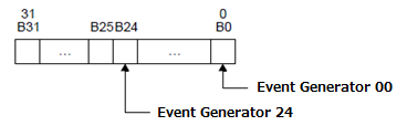 In case of setting the event to 0x01010101, the event link operations of event source 00, 08, 16, 24 are prohibited.