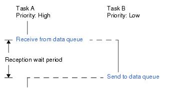 Note 2 Invoking tasks are queued to the transmission wait queue of the target data queue in the order defined at creating the data queue (FIFO order or current priority order).