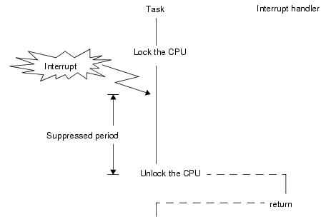 In the CPU locked state, the task scheduling is prohibited, and kernel interrupts are masked. Therefore, exclusive processing can be achieved for all processing programs except non-kernel interrupt handlers.