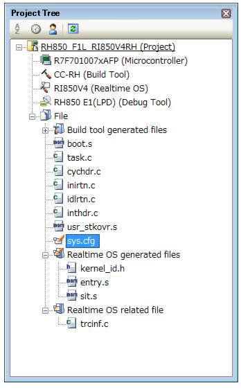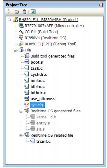 Note 1 If the system configuration file is added to the Project Tree panel, the Real-Time OS generated files node is appeared.