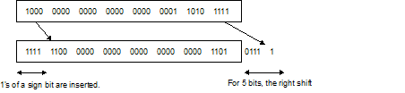 The value "0x800001AF" is shifted 5 bits to the right, leaving the sign bit.