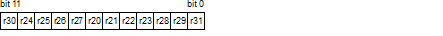 The 12 bits and 12 registers correspond as follows:
