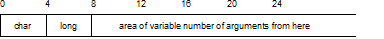 In the case of a structure or union whose size is not a multiple of 4, it is possible to add padding between the parameters. The contents of the padded area are undefined.
