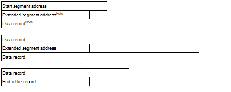 The Intel HEX file (20 bits) consists of four recordsNote: start segment address record, extended segment address record, data record, and end record.