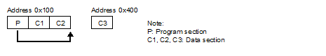 In the above example, section P is allocated from address 0x100, sections C1 and C2 are allocated immediately after section P, and section C3 is allocated from address 0x400. Since sections C1 and C2 are allocated continuously after section P, section P should be allocated behind section C2. Section C3 is not involved because it is not allocated continuously. |