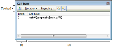 This panel is used to display the call stack information for the function call (see "2.13.1 Display call stack information").