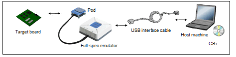 Connect a host machine and Full-spec emulator. If required, connect a target board, too.