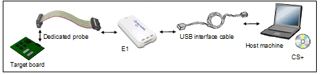 Connect a host machine and E1. If required, connect a target board, too.