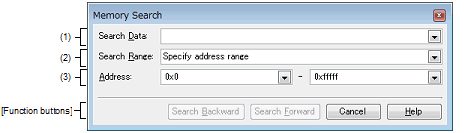 This dialog box is used to search memory (see "2.10.1.5 Search the memory contents").