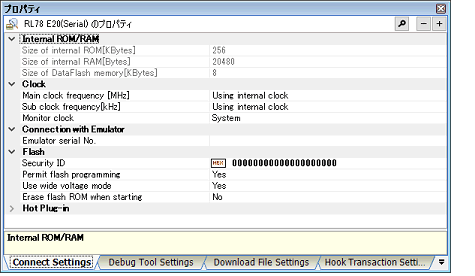 Configure the operating environment on the Property panel below when using E20.