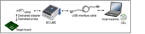 Connect a host machine and IECUBE. If required, connect a target board, too.