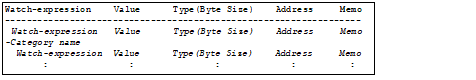 Note that for watch-expressions that can be displayed expanded, such as arrays, pointer type variables, structures/unions/class, and CPU registers (only those with the part name), the behavior differs depending on whether the watch-expression is saved with [Save Watch Data As...] or [Save Expanded Watch Data…].