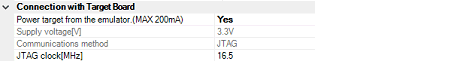 This property appears only when the [Power target from the emulator. (MAX 200mA)] property is set to [Yes].