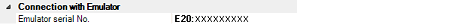 Serial numbers of all connected E20 emulators are displayed in the drop-down list.