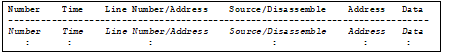 The contents of collected trace data can be saved, after specifying a range of data, in a text file (*.txt) or CSV file (*.csv) format. When saving to a file, the latest information will be retrieved from the debug tool, and saved according to the display format on this panel.