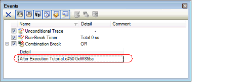 When you have performed this operation, it is interpreted as if a break event (execution-related) has been set at the target address, and it is managed in the Events panel (see "2.17 Event Management" for details). It is registered as "after execution" in the detailed information on the combination break in the Events panel.